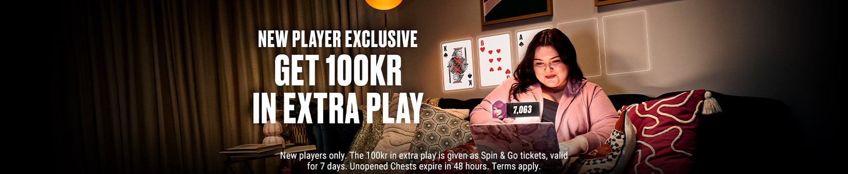 New PokerStars players who verify their identity can claim $17 (100kr) in extra play as part of our welcome offer. Extra play will be credited in form of Spin & Go tickets, as specified below.